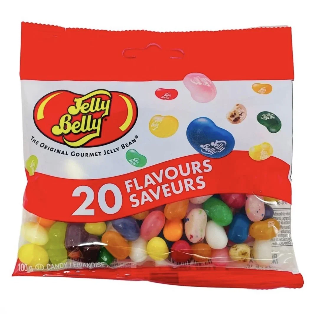 Jelly Belly 20 Assorted Flavours gourmet beans offer you a variety of flavours including Blueberry, Bubblegum, Buttered Popcorn, Chocolate pudding, Coconut, Cotton Candy, Green Apple, Island Punch, Sunkist Lemon, Lemon-Lime, Licorice, Orange Sherbet, Peach, Pina Colada, Strawberry Daquiri, Sunkist Tangerine, Toasted Marshmallow, Tutti-Frutti, Very Cherry and Watermelon! Enjoy them one at a time, or mix and match to create your very own personalized flavour profile! Take it all! With the sensational taste of the Jelly Belly 20 Assorted Flavours! 100g