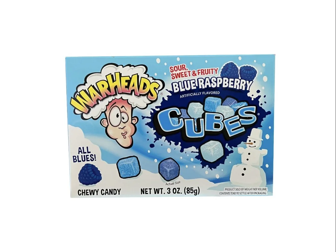 Sweet and sour blue raspberry warhead blizzard cubes. The perfect storm snack. 85g